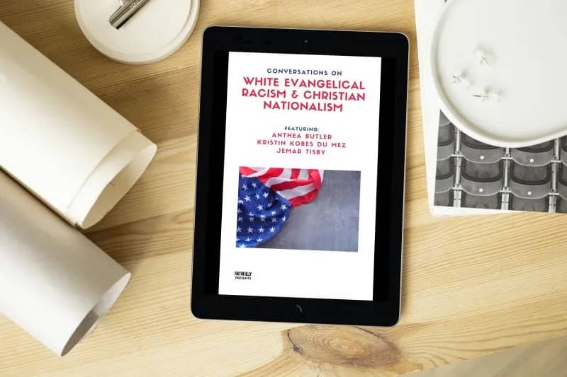 Donate now to help us stay on mission, and receive as "thanks" our free eBook of exclusive "Conversations on Christian Nationalism and White Evangelical Racism" featuring timely conversations with Dr. Anthea Butler (White Evangelical Racism), Dr. Kristin Kobes Du Mez (Jesus and John Wayne), and Dr. Jemar Tisby (The Color of Compromise).